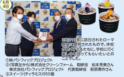 株式会社パシフィックプロジェクト様(千葉県佐倉市)ではコロナ禍による状況下の中でも生まれる「おめでとう」の場面に特別なスイーツを無償寄贈する「おめでとうスイーツプロジェクト」を立ち上げ、その第3弾として千葉県酒々井町の小学生全員と教職員約900名に「法王のティラミス」の寄贈を実行されました。 クリーンファー...